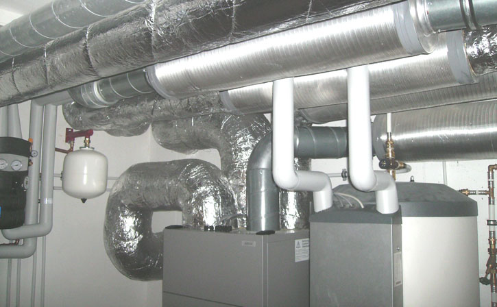 Wärmerückgewinnung unterstützt werden. Die Systeme werden mit Wohnungslüftung und Erdwärmetauscher zur Vorerwärmung der Außenluft kombiniert.