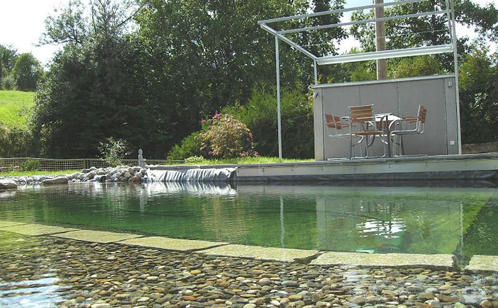 einem speziellen für diesen Zweck verlegte Rohr im Erdreich, kann ohne zusätzlich Energie kalte Zuluft im Winter über das Erdreich vorerwärmt werden.