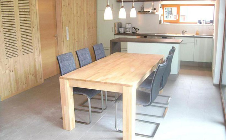 Das Innere des Sonnenhauses wird hauptsächlich über den Fußboden erwärmt. Durch die niedrige Vorlauftemperatur (30-35°C) kann die Wärmeschichtung